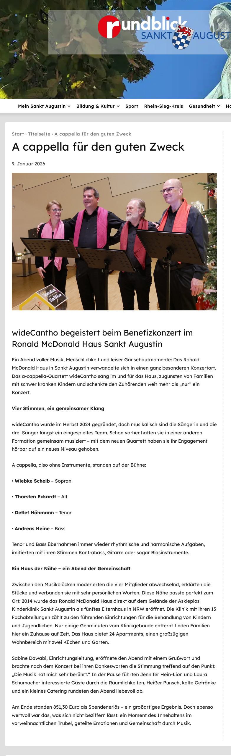 Auch der Rundblick Sankt Augustin berichtete am 09.01.2026 über unser Weihnachtskonzert für den guten Zweck:
