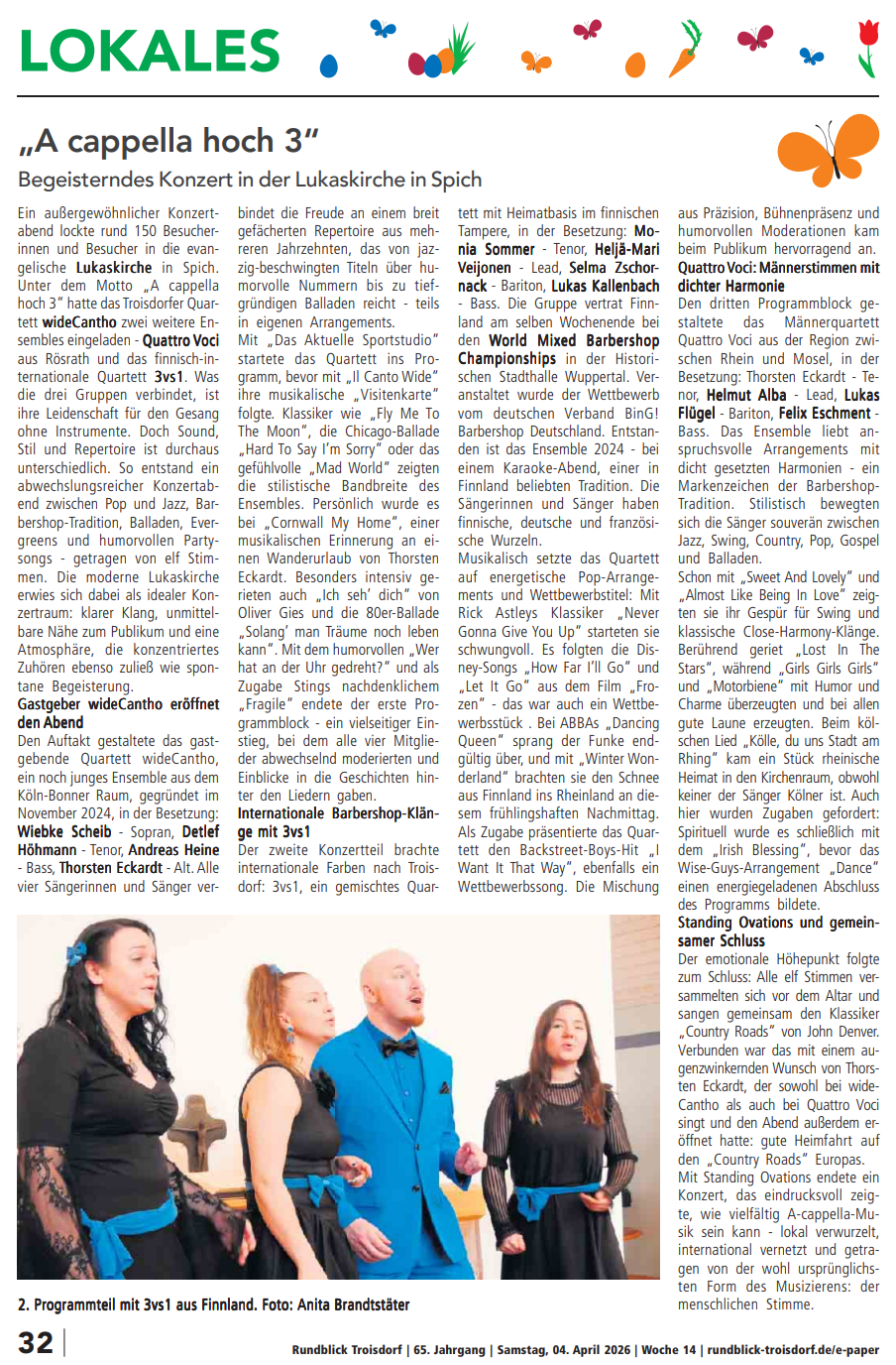Am 04.04.2026 spendierte der Troisdorfer Rundblick eine ganze Seite für unser "A cappella hoch 3" Konzert: